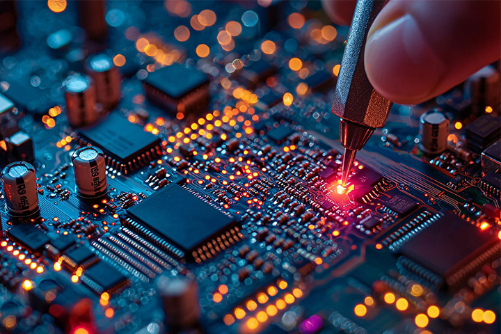 the Electronics Division handles semiconductors, electronic components, displays, system products equipped with these technologies, and FA (Factory Automation) equipment used in fields such as automotive, FA, OA (Office Automation), home appliances, medical, and social IT infrastructure. We provide technical support for design and quality, and operate our business globally.